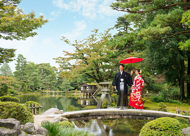 古都金沢の美しい街並みの中で行う前撮り撮影も人気。